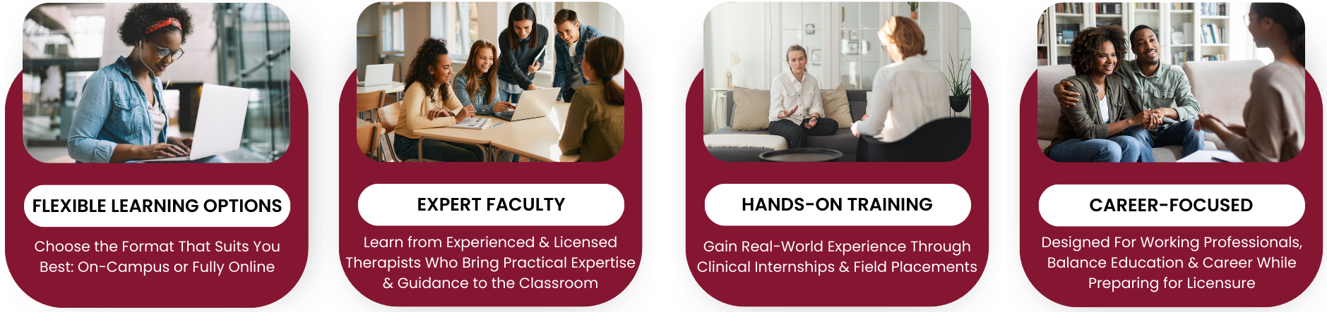Students who enroll and begin the Marriage and Family Therapy program are eligible to receive the Chart Your Path Scholarship. This scholarship is designed to support your journey as you take the next step toward a meaningful career in therapy. Don’t miss out on this opportunity to invest in your future!