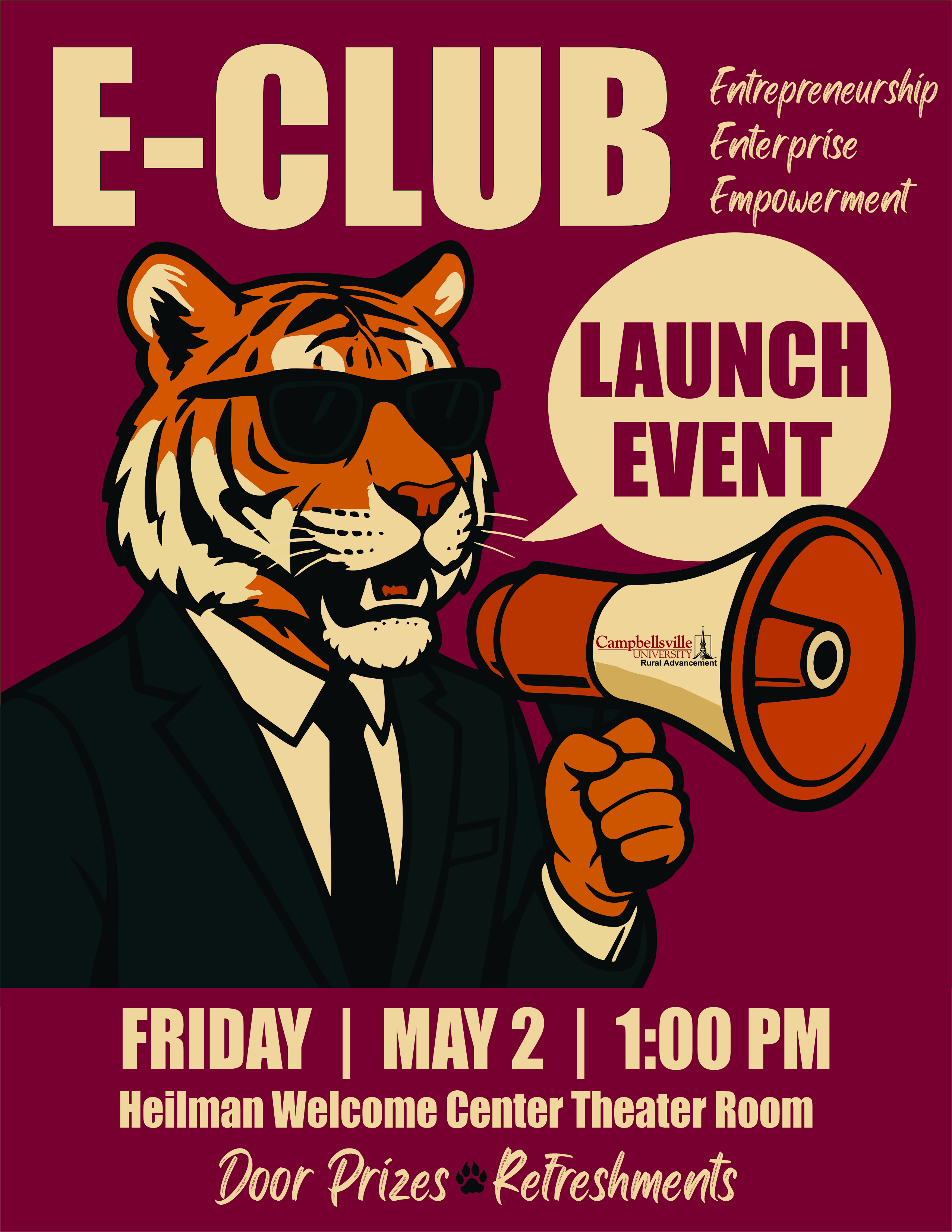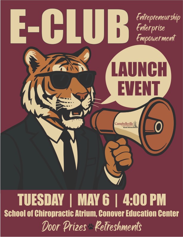 The Campbellsville University E-Club serves as a conduit for economic vitality and professional development between the campus and community by fostering authentic connections among entrepreneurs, business owners, nonprofit founders, students, faculty, and staff. Through educational activities and leadership initiatives, we equip, encourage, and embolden one another to innovate, inspire, and ignite growth.