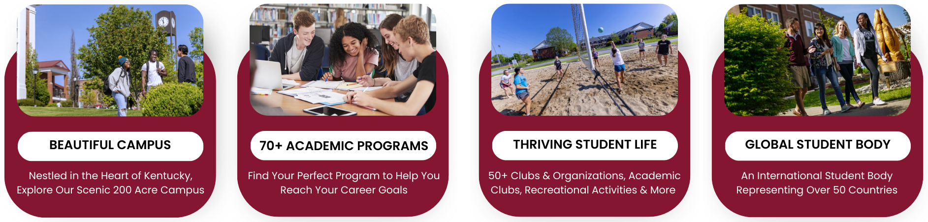 Joining the Campbellsville University community is an exciting journey, and we’re here to make it as smooth as possible. Our step-by-step guide walks you through every part of the admissions process, from submitting your application to exploring financial aid and registering for classes. We’ve provided all the details you need to ensure a successful transition to CU. Whether you're a first-time student, transfer, or graduate applicant, we’ll help you every step of the way. Take the first step toward your future at Campbellsville University today and discover all the opportunities that await you!